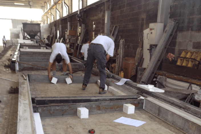 4. The EnviroCrete Mix is casted on an array of beds equipped with pre-set shuttering.