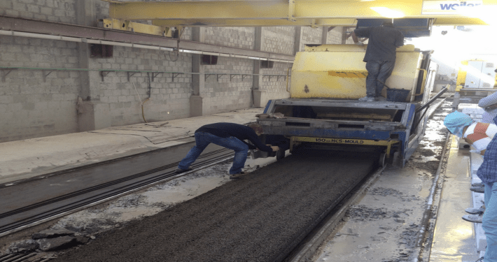 5. Once casted, the panels are in a horizontal position and levelled uniformly with a vibration and compacting system;
