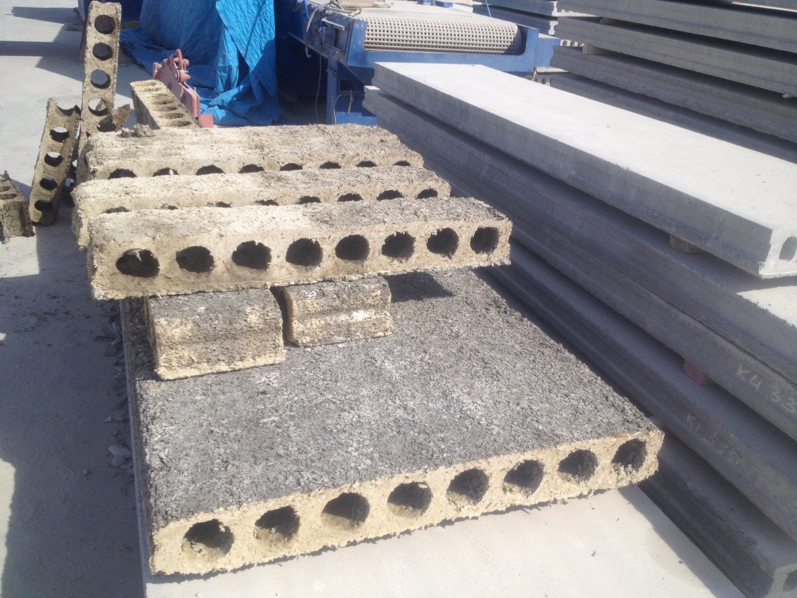 Production of Envirocrete Prefab components -wall panels- roof & floor slabs  -hollowcore partition walls