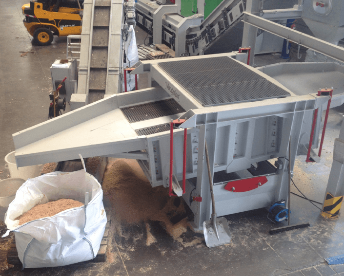 2. Screening for contaminants (metal, concrete, stone, or de-barking.)